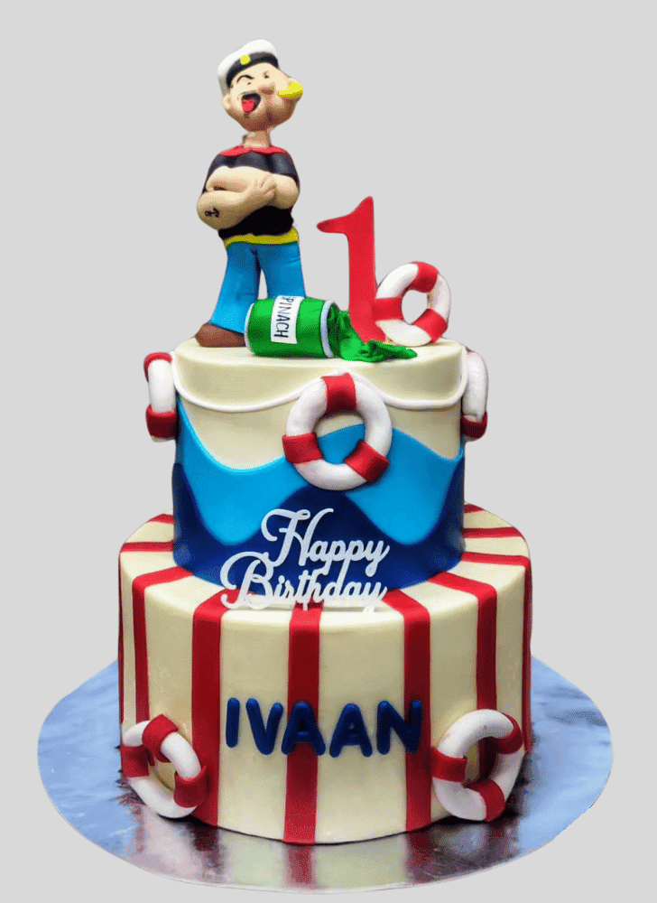 The Popeye Cake is a whimsical tribute to the iconic sailor who won hearts with his strength, courage, and quirky charm. Ideal for birthdays or retro celebrations, it brings a touch of animated nostalgia to the dessert table.
