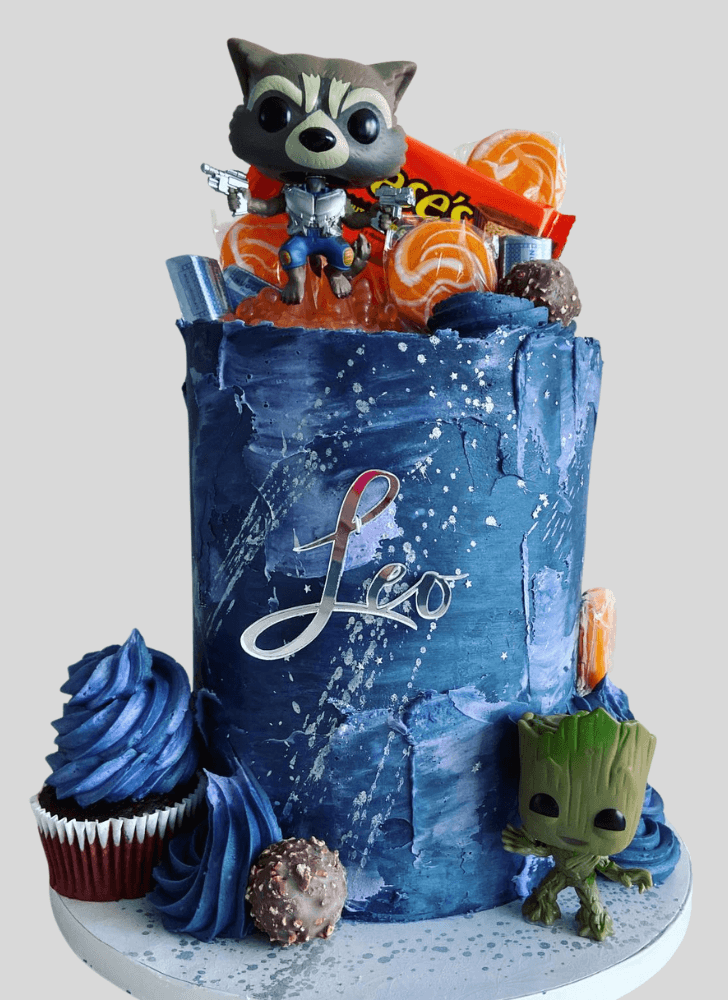 Perfect for birthdays, movie nights, or superhero parties, these cakes bring Rocket’s humour and bold spirit to the table. They’re a sweet way to celebrate Marvel’s mischievous raccoon.